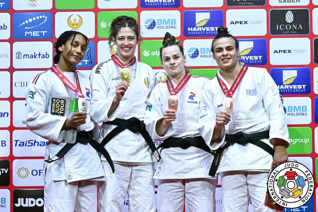 Émé, qui, après avoir battu la Japonaise Erina Ike aux pénalités, bénéficie de l’absence de Sanne Van Dijke, et avoir joliment ipponisé l’Italienne Irène Pedrotti sur un eri-seoi-nage à gauche allait chercher sa première médaille en Grand Chelem en plaçant un o-uchi-gari — son spécial — à la Chinoise Lu Liu. Une valeur suffisante pour celle qui fut médaillée mondiale juniors 2017 en -63kg et victime de plusieurs longues blessures. Une résilience remarquable pour la vice-championne de France 2025, qui réalise sa meilleure saison chez les seniors avec sa médaille d’argent au Grand Prix de Zagreb — la première de sa carrière également — en début de saison.