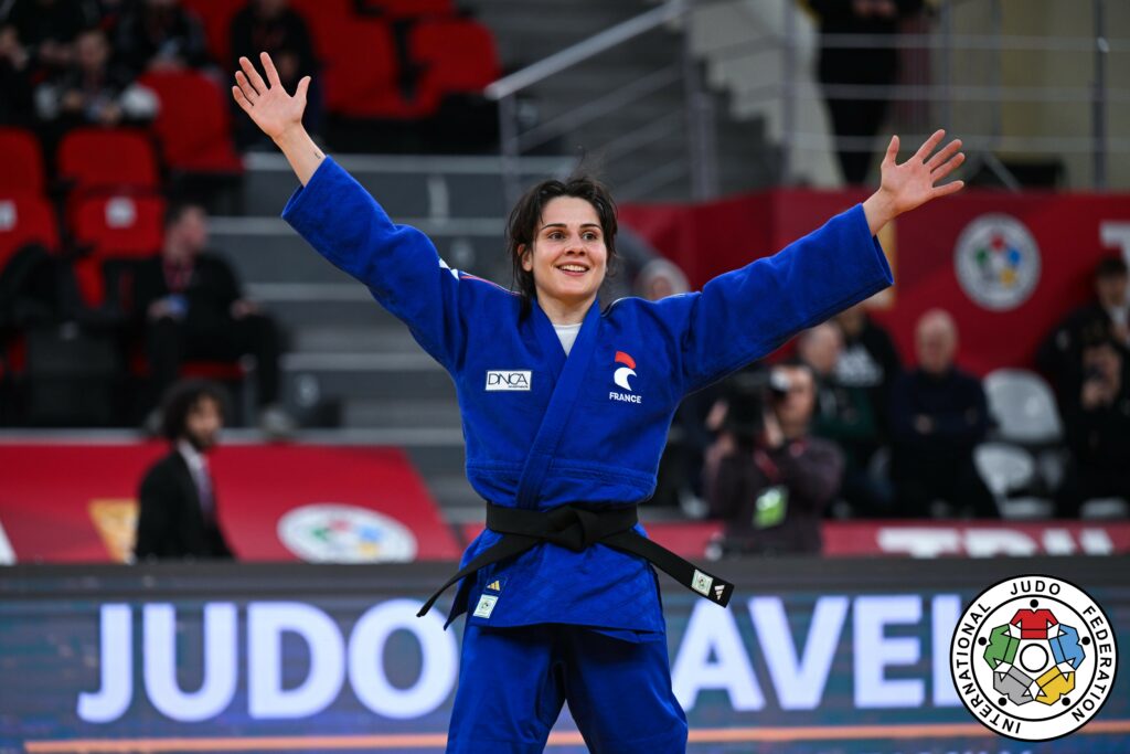Premier jour et déjà une médaille d’or pour la France grâce à Blandine Pont (RSC Champigny) en -52kg. Battue d’entrée au premier tour à Paris, la vice-championne de France 2025, brillante touche-à-tout et étudiante en chirurgie dentaire, s’impose ici, à Tbilissi après avoir battu une junior géorgienne, Nino Tatrishvili, n° 267 mondiale, la Chypriote Sofia Asvesta, tête de série n° 3 et n° 17 mondiale, grâce à son très efficace o-soto-gari à gauche, la Bulgare Gabriela Dimitrova, 24 ans et n° 90 mondiale en demi-finale puis, enfin, la Britannique Tatum Keen, 23 ans, 30e mondiale et cinquième au Grand Prix d’Autriche il y a peu. Une victoire en Grand Chelem, la quatrième pour la Campinoise en carrière, mais la première en -52kg après un parcours à sa main.