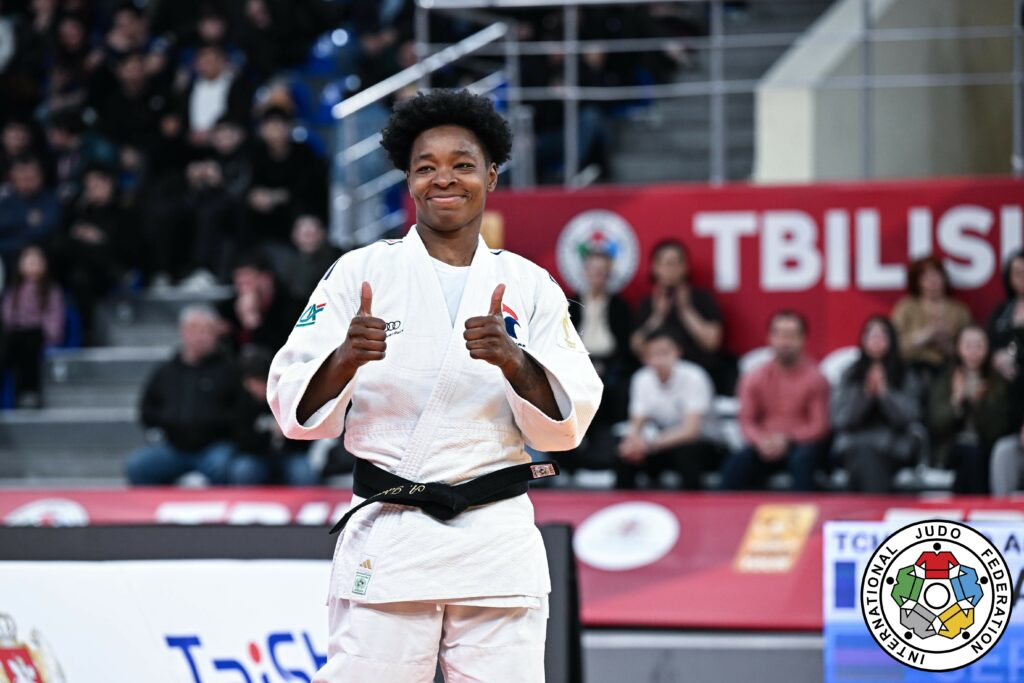 Et de dix pour Audrey Tcheuméo. Ce dimanche, la double médaillée olympique en individuel à Londres puis Rio s’offre son dixième titre en Grand Chelem, cet après-midi à Tbilissi. Une victoire sans même avoir à disputer la finale puisqu’Alina Boehm ne se présentait pas. Une journée à sa main pour la nouvelle licenciée du C’Chartres Judo qui nous gratifiait de ce qu’elle sait faire de mieux avec un o-soto-gari surpuissant sur la pourtant puissante ukrainienne Yuliia Kurchenko, tête de série n°5. En demi-finale, elle ne pliait et finissait même par trouver la solution face à la tête de série n° 1, la Slovène Metka Lobnik — n° 5 mondiale — sur un ko-soto-gari au golden score sur lequel les superviseurs annonçaient yuko.